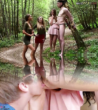 Cfnm Dominas Wank And Cocksucking Gimp In Forest