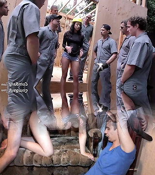 Gangbang for sexy Latina on construction site