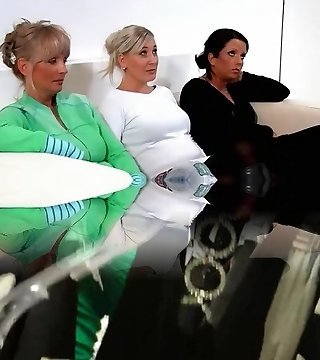 Cuckquean wife is watching how her husband fucks strapped up babe with hairy pussy