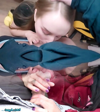 Sexy Slender Hotties Bathe in Jizm After Having a Gonzo FFM Threesome Fuck With a Kink Fellow From Dating Site