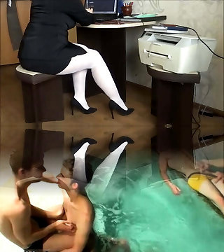Kinky alone nerdy office slut in pink blouse flashes her bald cooch