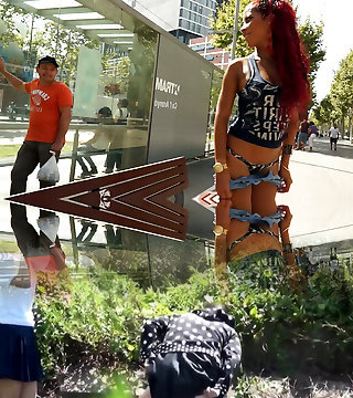 Ultra-kinky babe enjoys fingering her tight asshole in public