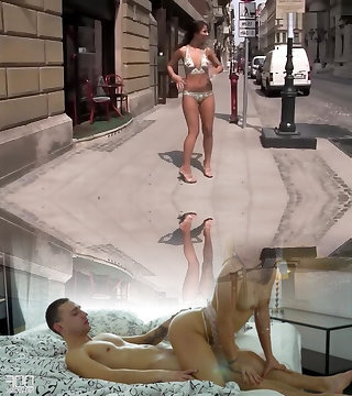 Costume Play Porn: Public Painted Statue Fuck part 4