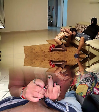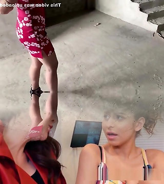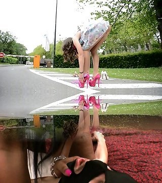 High heels CFNM domina in undergarments sticks heel in sub cock