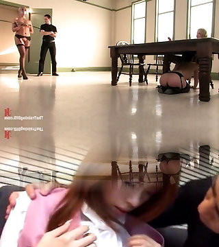 Inexperienced brown-haired cries with pain getting her nipples and twat beaten with curt