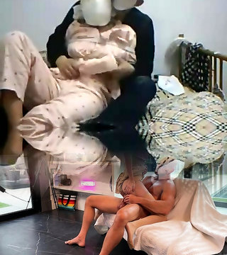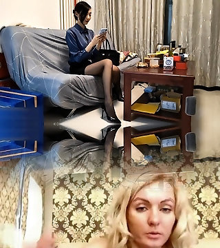 Chinese mature woman in stockings humiliates crossdresser lying on the floor