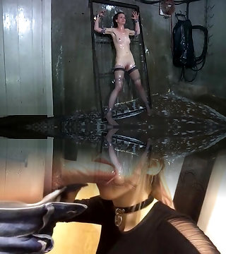 Super-naughty brunette girl with a toy in her arse punished by her master