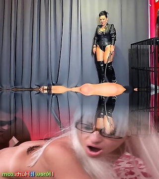 Mistress Kelly and acquaintance are abusing their slave and getting plumbed