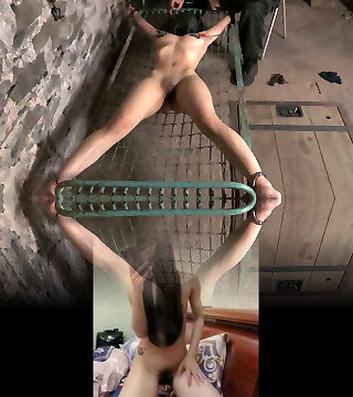 All naked and roped up Asian cockslut gets pussy drilled with a sex machine